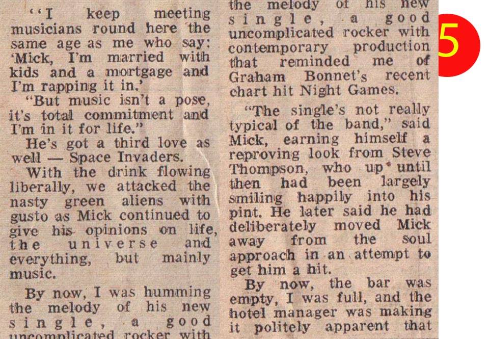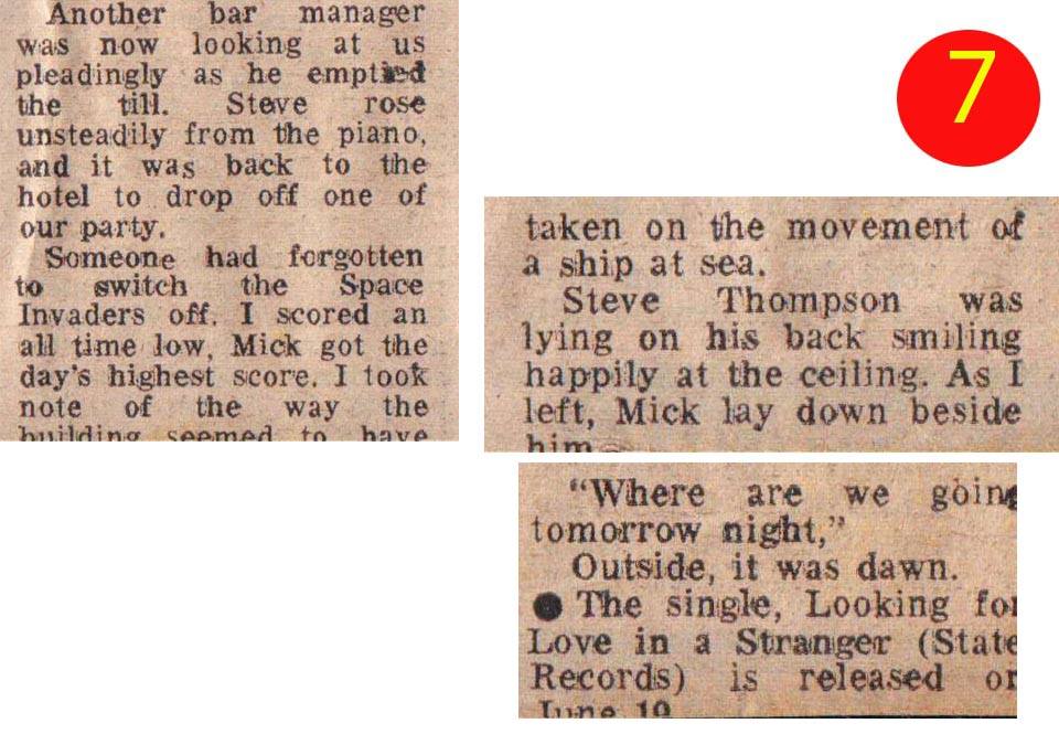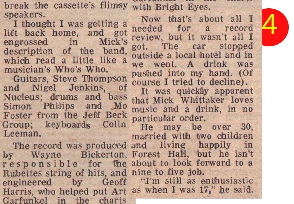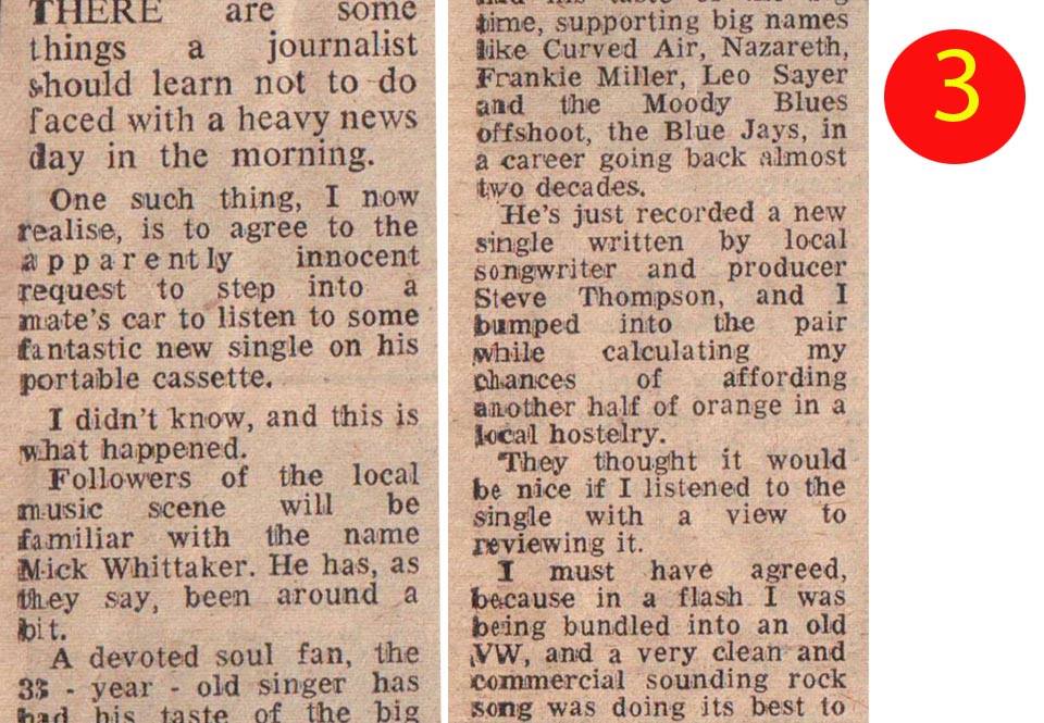 Facebook reminded me that I posted this 2 years ago today. It’s a newspaper cutting that I broke down into separate pics so it could be read. It didn’t really work on Facebook so here it is again in my blog. You should be able to read the clips in order. It tells the story about the night Mick Whitaker and I were having a beer or two when we chanced upon a hapless journalist. We had a record out at the time so we went into heavy promo mode. The journalist tells it all blow by blow. I found a version of the recording I posted a while ago and you can hear it below. The first segment is Toni Haliday’s version, then Mick and finally Chris Farlow had a bash. The released version was by Mick. Click on he thumbnails below to read the story.